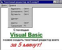 На современном компьютере вся операция займет едва ли больше минуты, причем основное время будет потрачено на загрузку VB. Разумеется, от такой программы не много толку. Поэтому попробуем сделать что-нибудь более полезное, например текстовый редактор, для чего используем VB 6.0.