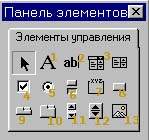 | Рис. 1. Панель инструментов с компонентами форм |