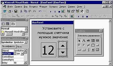 - Чтобы пользователь мог вносить в программу определенные данные (кроме создания форм), можно применить встроенные диалоги Visual Basic — диалоговое окно «Открытие файла», «Свойства документа» и др. Они вызываются следующими командами: Dialogs(«Название диалога»).Show — показывает диалог и выполняет соответствующие ему действия; Dialogs(«Название диалога»).Display — только демонстрирует диалог и позволяет записать в переменные введенные изменения, однако никаких действий не выполняет и ничего не изменяет; Dialogs(«Название диалога»).Execute — ничего не отображает на экране, но применяет все изменения, сделанные ранее по команде With Dialogs(«Название диалога»)... End With). Чтобы получить список возможных диалогов, наберите Dialogs(. К сожалению, в справочной системе нет описания конкретных диалогов, поэтому придется отображать каждый.