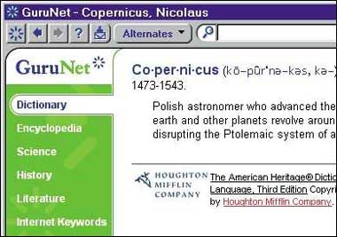 | Щелкните на каком-нибудь слове на экране, и GuruNet найдет к нему определения и другую информацию |