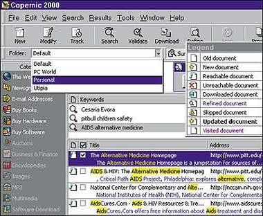 Эта программа компании Copernic Technologies не является «искалкой» в собственном смысле слова, но она поднимает поиск на новую высоту, предлагая впечатляющие средства организации и взаимодействия. Copernic позволяет сохранять результаты поиска в настраиваемых папках, посылать их по электронной почте, убирать недействительные ссылки нажатием кнопки Validate и сортировать список по релевантности и другим критериям. Бесплатная версия программы, подобно метапоисковому серверу, передает ваш запрос одновременно на несколько десятков серверов. Версии Plus (40 долл.) и Pro (80 долл.) работают с сотнями общих и специализированных поисковых систем и имеют такие функции, как удаление баннерной рекламы со страниц результатов или (в версии Pro) автоматический поиск по расписанию.