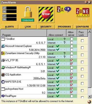| Игра по правилам: ZoneAlarm компании Zone Labs проводит мониторинг всех программ, обращающихся к Сети, и блокирует те из них, которые ведут себя некорректно |