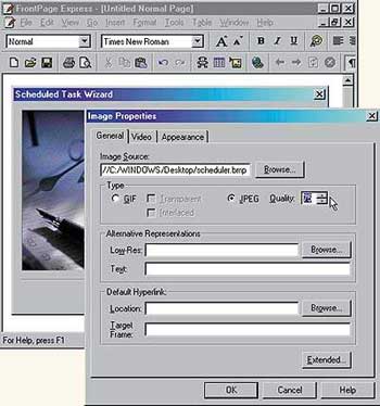 | FrontPage Express обеспечивает большие возможности контроля за конверсией изображений из формата .bmp в формат .jpg |