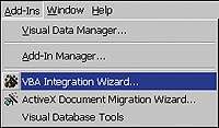 После инсталляции VBA 6.0 SDK 6.1 в среде разработки VB появляется новый элемент меню Add-Ins — команда VBA Integration Wizard (рис. 2). С ее помощью процесс интеграции VBA в бизнес-приложения, по уверениям Microsoft, должен занять считаные минуты. Проверим это на практике.