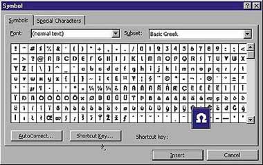 Как увидеть и использовать знаки шрифта, не отображаемого в списке диалогового окна «Символ» (Symbol) — «Вставка?Символ» (Insert?Symbol)? При выборе шрифтов вы, естественно, не ограничены только списком в окне «Символ» (Symbol). Когда вы хотите увидеть символы какого-либо шрифта, имеющегося в вашей ОС Windows, то прежде чем указать «Вставка?Символ» (Insert?Symbol), замените шрифт на желаемый, используя панель инструментов «Форматирование». Затем можно отобразить символы выбранного шрифта в диалоговом окне «Символ» (Symbol), отметив в списке шрифтов пункт «обычный текст» (normal text). Чтобы увеличить изображение требуемого символа, щелкните на нем мышью один раз, а чтобы вставить его в документ — дважды.