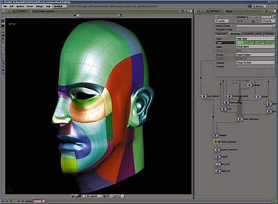 | Houdini — очень мощный и популярный пакет: слева — процесс моделирования головы, справа — настройка мимики лица |