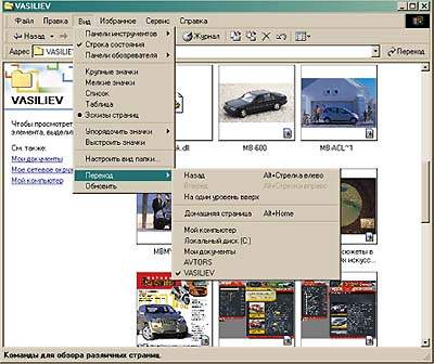 В Windows 98 команда «Переход» находится в главном меню папки и двухпанельного окна Проводника, а в Windows 2000 и Windows Me — в меню «Вид» (аналогично Internet Explorer). Она выводит список из девяти папок или Web-страниц, которые вы открывали последними, и команд для перехода назад, вперед, на уровень вверх и на «домашнюю» страницу.