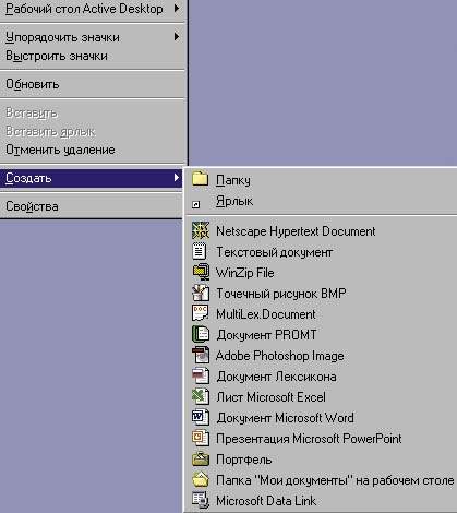 [Win9x, Me] Щелкните внутри папки правой кнопкой мыши и выберите в появившемся меню пункт «Создать». Вы получите список типов документов, которые теоретически могли бы вам пригодиться. К сожалению, на практике из всего этого богатства, как правило, используются только пункты «Папка» и «Ярлык». Но положение можно поправить, — правда, потребуется набор программ Tweak UI (см. врезку на с. 85), имеющийся на системном диске Windows 98 и в разделе Downloads сервера PCWorld.com.