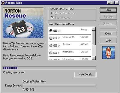 | Rescue Disk в работе — создается загрузочная дискета |