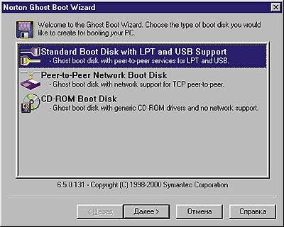 Архив диска, образуемый Ghost, может располагаться на другом логическом диске, на носителе, подключаемом к LPT или USB-порту, на записываемом CD-ROM и даже на другом компьютере в локальной сети. Для каждого конкретного случая нужно готовить свою загрузочную дискету либо с поддержкой локальной сети, либо с возможностью работать с CD-ROM или USB- и LPT-устройствами. Это позволяет также использовать Norton Ghost для быстрой инсталляции и ОС, и набора прикладных программ.