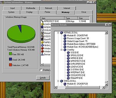 System Information предоставляет информацию о составных частях ПК. В отличие от Microsoft System Info, она извлекает много полезной информации непосредственно из устройств. Так, для монитора она даже сообщила размеры видимой области экрана в миллиметрах. Есть и встроенная функция Benchmark, позволяющая провести комплексную оценку быстродействия системы. Причем будут учитываться скорость процессора, объем оперативной памяти и быстродействие системной платы. Еще одной хорошей и полезной функцией System Information является отображение содержимого жестких дисков ПК с учетом физического места, занимаемого каждым файлом и каталогом. Это дает возможность увидеть потери дискового пространства, возникающие из-за того, что многие файлы не полностью занимают выделенные им кластеры и оставляют в них свободное место. По итогам отчета System Information можно заархивировать папки, допускающие наиболее значительные потери физического места диска (обычно таковыми бывают каталоги с большим числом маленьких файлов) или переместить их на другой логический диск с кластерами меньших размеров. Кроме того, System Information показывает распределение оперативной памяти по загруженным в нее приложениям, отображая весьма информативный отчет.