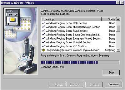 | Norton WinDoctor. Сканирование Реестра на предмет ошибок |