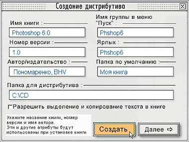 После нажатия кнопки «Создать» программа формирует в указанной папке всю необходимую информацию для сохранения на диске, для запуска и работы электронной книги, а также для ее инсталлирования в ОС и вызова из главного меню.