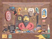Весь этот сонм развлечений имеет оригинальное и стильное обрамление. Каждый элемент продукта, от бровей главного героя до последней пуговицы на халате лохотронщицы, вылеплен из пластилина. Вот в таком мире вас и встречает ларечник Рудик с манерами профессионального зазывалы, сменщики которого — дед, беспрестанно ковыряющий в ушах, и бабка, хранящая свой «любимый брютерброт с колбаской» на прилавке среди игрового ассортимента и рядом с бутылкой самогона. И обхождение, и говор явно выдают в этой троице гастарбайтеров, перебравшихся с периферии СНГ в более «хлебный» регион на заработки. В захламленном ларьке навалены, развешены и выставлены все 53 способа сравнительно честного отъема денег у граждан, то бишь у лохов. Уже один «вид» ларечных игрушек явно говорит об их «китайском» происхождении — все они неладно скроены, некрепко сшиты. Однако же народ берет — не сердито, но дешево!