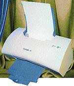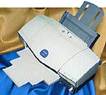 Установка этого принтера столь же проста и так же хорошо иллюстрирована, как и у модели DeskJet 920C, но уже на начальном этапе понимаешь, что имеешь дело с более «солидным» аппаратом. Так, если DJ 920C в качестве пробной страницы выводил фотографию в половину листа A4, то эта модель распечатывает уже две страницы — одну с фотоизображением почти во весь лист, а вторую с приветствием на 21 языке, включая русский. Пустячок, а приятно. Кроме того, в DeskJet 980Cxi удобнее загружать бумагу, и у него более вместительный входной лоток, рассчитанный на 150 листов. В отличие от модели 920C, принтер выполняет калибровку картриджей автоматически, что, конечно, вряд ли является предметом первой необходимости, но это, согласитесь, дополнительный плюс. Конструкция аппарата позволяет устанавливать устройство для автоматической двусторонней печати (входит в стандартный комплект поставки). При загрузке листа невольно обращаешь внимание на красивый синий огонек, видный через полупрозрачную крышку. Но это не украшение, а датчик автоматического определения типа носителя (ориентированного, естественно, на продукцию HP) для выбора оптимального режима печати (хотя у российских пользователей, привыкших доверять лишь собственным глазам, данная функция вряд ли найдет широкое применение).