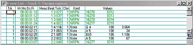 | Рис 5. Список событий Event List в программе Cakewalk Pro Audio 6.0 |