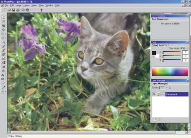 Программа PhotoPlus (рис. 1) компании Serif — растровый графический редактор со всеми основными функциями, необходимыми для создания и редактирования изображений. Поддерживаются слои и маски. Приложение работает с графическими форматами файлов BMP, DIB, EPS, FPX, GIF, IMG, JPG, MAC, MSP, PCD, PCT, PCX, PNG, PSD, RAS, TGA, TIF, WMF и WPG.