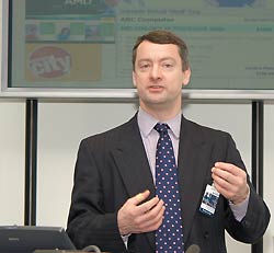 | Второй день семинара с общей тематикой «Тестовые программы для ПК — практика, методология, будущее» открыл директор AMD по маркетингу в странах Европы Роберт Стид (Robert Stead) |