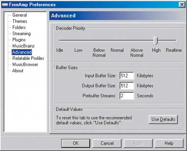 Установка 2-Mбайт дистрибутива FreeAmp 2.1.1 прошла интересно и гладко. Первым делом я должен был согласиться с условиями бесплатной лицензии GNU, нажав кнопку с надписью «Cool!», — уже оригинально. Затем программа установки предложила включить возможность записывать потоковое медиа на диск — тоже что-то новенькое, обычно такие возможности предоставляют отдельно устанавливаемые подключаемые модули. Единственное неудобство состояло в необходимости перезагрузить компьютер по завершении установки.
