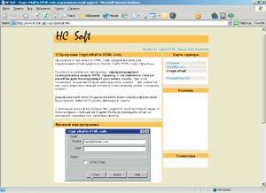 В-третьих, советуем использовать специальную небольшую утилиту CRIPT EMAIL TO HTML CODE (всего около 15 Кбайт, http://www.hcsoft.spb.ru/cryptemail.htm и с русским интерфейсом).