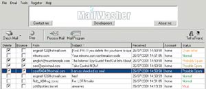 Программа специально предназначена для борьбы со спамом. MailWasher основывается на международных черных списках почтовых ретрансляторов, которые обычно используют спаммеры. MailWasher работает с ORDB Black List, Spam Cop Black List и VISI Stop List. Программа присваивает входящей почте следующие метки: normal, spam, probably spam, virus, possibly virus, chain letter, blacklisted, которые затем помогают отсеивать ненужные почтовые сообщения. Также MailWasher автоматически отправляет спаммерам письма о том, что пользователь с указанным электронным адресом неизвестен почтовому серверу.
