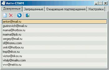 В программе реализована система подтверждений адресов авторов входящей почты. Когда вы пытаетесь получить письмо обычным почтовым клиентом (TheBat! или Outlook), Winantispam проверяет, является ли отправитель письма доверенным адресатом. Неизвестному программе отправителю отсылается запрос на авторизацию, и только после подтверждения он заносится в белый список. Если же отправитель все равно окажется спаммером, то пользователь Winantispam всегда сможет перенести его в черный список (подробнее об этой программе читайте в «Мире ПК» № 8/03, с. 78).
