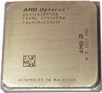 При сравнении необходимо учитывать, что Athlon FX имеет тактовую частоту 2200 МГц, тогда как старшая модель Opteron — только 2000. Кроме того, в момент выпуска Opteron еще не было стандарта на память DDR-400, и этот процессор рассчитан на работу с памятью DDR-333 (в архитектуре AMD-64 контроллер памяти встроен в процессор).