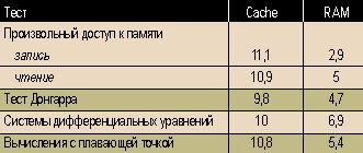 | Различие производительности при обработке данных в кэш- и оперативной памяти, % |