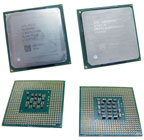 | Слева — Northwood, справа — Prescott: внешне отличаются только по типу и количеству конденсаторов снизу |