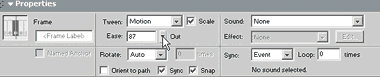 | Рис. 7. Ease (Ослабление) на панели Properties (Свойства) клипа |