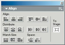 Выделяем мяч, выбираем на панели To Stage (Выравнивание по сцене) и выравниваем по горизонтали Align Horisontal Center (Выравнивание по центру, по горизонтали).