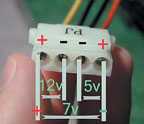 | Рис. 2. Разъем блока питания и схема напряжений |