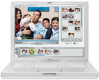 Модели iBook с 12- и 14-дюймовыми дисплеями помещены в обтекаемый прочный корпус из поликарбонатного пластика. Они оснащены 1,2- или 1,33-ГГц процессором PowerPC G4, 256-Мбайт ОЗУ, 30- либо 60-Гбайт жестким диском, а также видеоплатой ATI Mobility Radeon 9200, сетевой платой AirPort Extreme и модулем Bluetooth для беспроводных соединений. В зависимости от конфигурации ноутбуки оборудованы дисководом SuperDrive (DVD-R/CD-RW) или Combo (DVD-ROM/CD-RW). Все ПК снабжены большим набором портов ввода-вывода для подключения самых различных периферийных устройств, в том числе акустических систем, MIDI-клавиатуры и проигрывателя iPod.