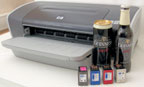 Чернила должны быть чистыми и отфильтрованными, поскольку диаметр дюзы на выходе не превышает 11 мкм, а ее блокировка ведет к падению качества отпечатков. Кроме того, в состав красок должны добавляться присадки, обеспечивающие самоочистку дюз от продуктов окисления и от засорения. В общем, как любят говорить на заводе DIMO: «HP Ink isn?t just colored water» (чернила HP — это не просто окрашенная вода), и приводят список других отличий от акварельных красок (см. схему в фотоальбоме на CD).