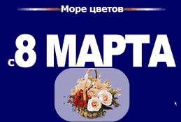 Тип 1. Универсальная открытка. Делается к общенародным праздникам, когда одновременно нужно поздравить многих, например, с Новым годом, Рождеством или, как предлагается в данном случае, с 8 Марта. Уверена, что у вас найдется не меньше десяти знакомых, которых вы хотели бы поздравить через Интернет. Понятно, что нет ни времени, ни смысла придумывать много различных сюжетов. Достаточно один раз проработать открытку, а потом на ее основе сделать 10, 20, 30 - в общем, столько, сколько нужно, причем за минимально время, подставляя имя поздравляемого и корректируя пожелания.