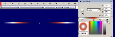 - Создайте movie-символ «lenta», с помощью инструмента Rectangle Tool (Прямоугольник) нарисуйте полоску 480х5 пикселов и удалите ее контуры. Используя палитру Color Mixer (Цветовой микшер), настройте градиентную заливку объекта, как показано на рис. 1.