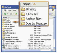 Когда вы по имени упорядочиваете файлы в окнах Проводника, то папки появляются наверху, а остальные файлы ниже, причем внутри каждой группы все становятся в алфавитном порядке. Если же вы намерены поместить какой-либо конкретный файл либо папку в начале списка или расположить сжатые папки и ярлыки к ним наверху рядом с другими папками, поскольку эти элементы ведут себя также как папки, то измените их названия, поместив в начале имен специальный символ. Выделите ярлык, файл или папку и нажмите
