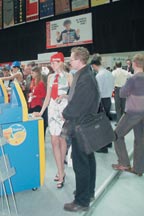 Наблюдение первое. К середине первого дня в главный павильон экспозиции выстроилась длиннющая очередь, да к тому же в три ряда. (Официально все залы имеют одинаковый статус, но все же 4-й павильон я назвал «главным», так как там традиционно собираются производители цифровых камер и фотопринтеров, позволяющие потрогать руками свою продукцию.) Внутри, правда, было относительно свободно — не всегда требовалось проталкиваться . На фоне развивающихся выставок «Фотофорум» и «Связь-Экспокомм» можно решить, что «Комтек» умер из-за отсутствия интереса к компьютерам. Но мы часто пишем, что Россия следует в фарватере мировой ИТ-индустрии, а вместе с тем именно компьютерные выставки Computex и CeBIT процветают, и они интересны отнюдь не только корпоративным пользователям. Да, сейчас производителям приходится показывать свои ноутбуки и МР3-плееры на «Фотофоруме» или «Связь-Экспокомме». Но разве это логично? Рискну предположить, что в России неизбежно будет организована выставка типа CES (см. «Мир ПК», №4/05), которая объединит производителей всевозможной электроники.