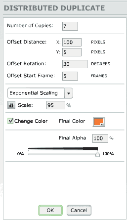 Выделите цветок и воспользуйтесь командой Distributed duplication (Распределенное дублирование) из меню Insert ? Timeline Effects ? Assistants (Вставить ? Эффекты Монтажного стола ? Помощники). В появившемся диалоговом окне настройте параметры для эффекта (рис. 2).