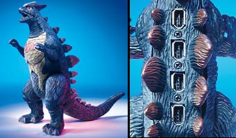 Вам нужен дополнительный порт FireWire в ноутбуке или настольном ПК? Концентратор FireWire превратит ваш единственный порт в два, четыре и более. Найти такое четырехпортовое устройство можно дешевле чем за 50 долл., но вы заставите позеленеть от зависти любого поклонника фильмов категории Б в своем офисе, если обзаведетесь 75-долл. FireWire Dino компании Charismac, первоначально именовавшимся Hubzilla, но затем это название было изменено по правовым причинам. Сей продукт представляет собой четырехпортовый концентратор, помещенный в корпус в виде устрашающего монстра наподобие Годзиллы (рис. 3).