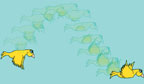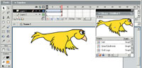 | Рис. 8. Анимация летящей птицы, созданная с использованием смешанной техники: взмахи крыльями — перекладка, перемещение — автоматическая трансформация движения (Motion Tween) с применением кривой траектории (Guide) |