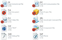| Рис. 5. Внешний вид значков различных типов файлов, относящихся к Macromedia Flash |