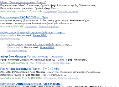 Задумано — сделано. Уже 14 июня поисковик Google стал выдавать на самых верхних местах ссылку на сайт радио «Маяк 24» по популярным поисковым фразам: «эфир «Эха Москвы» и «радиостанция «Эха Москвы». А лавры результатов коммерческого запроса «выгодный хостинг» надолго ушли к сайту www.digdot.com, несмотря на жестокую борьбу многих оптимизаторов за это ключевое словосочетание.