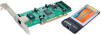 | Рис. 2. Адаптеры Ethernet для шин PCI и PC Card |