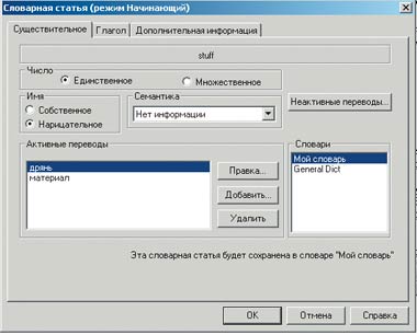 Однако многовариантные слова также способны направить контекстную обработку текста по неверному пути. Работа со словарями в рамках одной тематики перевода включает в себя не только выбор нужного направления и соответствующих словарных баз, но и некую иерархию. Словари расположены по старшинству, и при выборе варианта перевода программа отдает предпочтение именно тому, который найден в более «главном» словаре. Если мы имеем дело с текстом вполне однозначной тематики, никаких сложностей эта схема не вызывает. Таким образом, перевод, скажем, лицензии на ПО в основном апеллирует к «информатике» и «юриспруденции». Самым старшим является пользовательский словарь, куда и заносятся все неоднозначные трактовки вкупе с незнакомыми словами. А вот со смешанными текстами все обстоит куда сложнее. И однозначной иерархии словарей в рамках такого текста выстроить не удастся. Можно, конечно, менять каждый некорректный вариант вручную, но не этого ли мы изначально стремились избежать? И здесь на помощь приходит абзац как основная рабочая единица. Если разбивка выполнена корректно, то смысл и тематика вполне однородны именно в рамках одного абзаца. В следующем примере рассматривается как раз такой подход. Аналогично дело обстоит и со словосочетаниями. При вводе в словарь некоего оборота программа запросит данные для каждого отдельного слова. Это позволяет надеяться, что сочетание не станет мертвым грузом в единственной форме и будет склоняться автоматически.