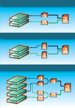 В число возможных способов использования технологии RAID входят простое дублирование содержимого одного жесткого диска на другом (эта процедура называется зеркалированием, англ. mirroring, и позволяет иметь мгновенно доступную рабочую копию на тот случай, если один из дисков выйдет из строя), расщепление битов данных с размещением их на нескольких жестких дисках (это так и называется расщеплением, или расслоением, данных, англ. striping; такая технология ускоряет запись и считывание информации), а также различные комбинации двух этих способов. От выбранного подхода будут зависеть количество жестких дисков, которое вам понадобится, и сложность установки (см. врезку «Простейшая технология RAID повышает производительность и отказоустойчивость»).