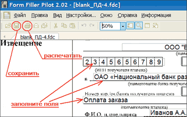 | Form Pilot: пример заполнения квитанции |