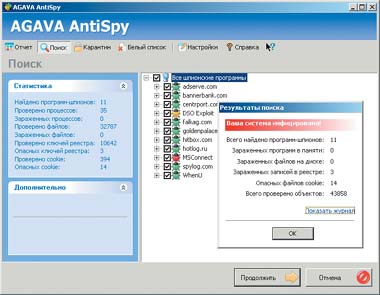 | AGAVA AntiSpy — отчет о поиске |