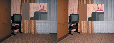 При съемке в помещениях, где света зачастую недостаточно, «автомат» выставляет высокое значение ISO для проработки всех деталей, что приводит к зашумлению снимка и потере качества. Применив компенсацию вспышки, можно улучшить общую освещенность кадра и понизить ISO. Фотокадр, показанный на рис. 5 (слева), был получен на автомате (ISO 200). На фотографии справа (рис. 5) применялись коррекция экспозиции вспышки +1.3Ev, коррекция экспозиции снимка -0.7Ev и ISO 100. Использование компенсации вспышки +1.3Ev увеличивает и делает равномерной общую освещенность кадра. Коррекция экспозиции снимка -0.7Ev несколько приглушает чрезмерную освещенность, которую дает увеличение компенсации вспышки, а ISO 100 делает снимок менее «шумным» и соответственно более качественным. Значения компенсации вспышки и коррекции экспозиции нужно подбирать индивидуально, в зависимости от условий и возможностей вспышки конкретного фотоаппарата. Что касается ISO, то в среднем в помещениях выставлять ISO менее 100 единиц не следует.