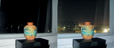 | Рис. 7. Использование режима синхронизации при длительных выдержках. Параметры для фото справа: выдержка 4 с; компенсация -0.3Ev; ISO 200 |